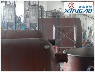 我廠生產(chǎn)的(電、蒸汽、導(dǎo)熱油加熱)反應(yīng)鍋由鍋蓋、筒身、夾套、攪拌器、軸封傳動裝置及支承等組成,與鍋內(nèi)物料接觸處的鍋體和零部件均采用ta2或ta2+Q235容器鋼板制成。