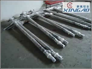 ③槳式攪拌器 有平槳式和斜槳式兩種。平槳式攪拌器由兩片平直槳葉構(gòu)成。槳葉直徑與高度之比為 4~10,圓周速度為1.5~3m/s,所產(chǎn)生的徑向液流速度較小。斜槳式攪拌器(圖4)的兩葉相反折轉(zhuǎn)45°或60°,因而產(chǎn)生軸向液流。槳式攪拌器結(jié)構(gòu)簡單,常用于低粘度液體的混合以及固體微粒的溶解和懸浮。